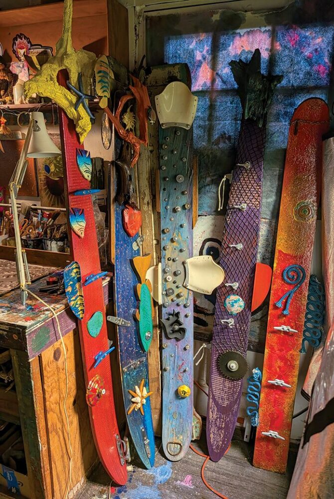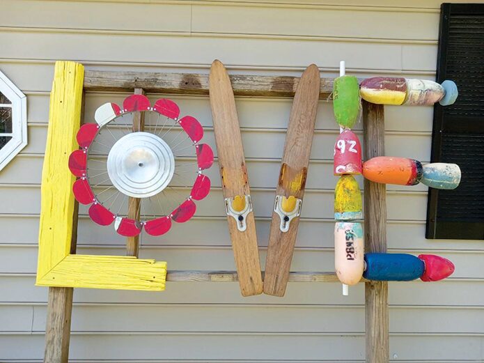 Old water skis have become one of his favorite things to repurpose into art. Some of the pieces are functional, leading double lives as coat hooks, while others are simply a colorful representation of life on the Northern Neck.