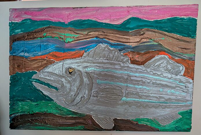 Jones also does paintings of fish, bridges, abstract art and creates giant signs out of pieces of driftwood, old oars, buoys and anything else he can find.