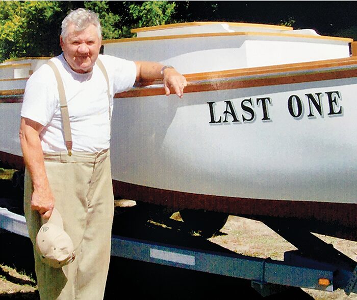 The torch was passed to Tommy Daniels of Mathews who bought Charlie’s hull. It took him two years to complete the boat. “I followed in the footsteps of a giant,” said Daniels referring to Charlie Dunlevy. “I appreciate his craftsmanship. Craftsmanship like this is disappearing . . . when it’s gone artificial intelligence will build things, but they won’t be built like this.”