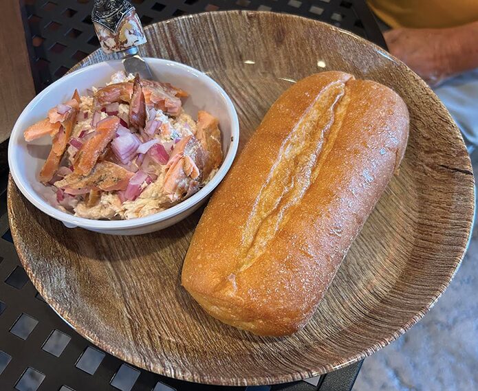 Unlike many wineries, Mattapony Reserve has a full kitchen and also serves as a restaurant with farm- and sea-to-table appetizers and entrees. Bison is the meat of choice in its burgers and meat pies or empanadas. A smoked salmon dip is a customer favorite, according to Ginger. The salmon is marinated in brine overnight and smoked over hickory.