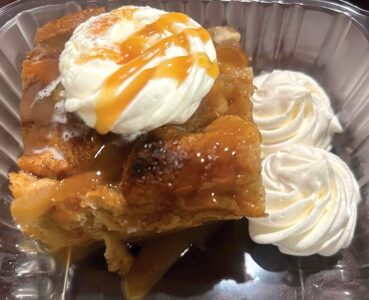 Top off dinner at Scoot’s with a homemade dessert, usually four to pick from daily. We enjoyed some warm bread pudding and a decadent peanut butter and chocolate pie. Leftovers from both paired well with a hot cup of coffee for breakfast the next day.
