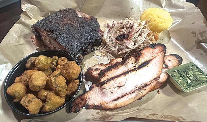 Scoot’s sides include Southern-style collards, mac and cheese, sweet coleslaw, onion straws and a personal favorite, fried okra.