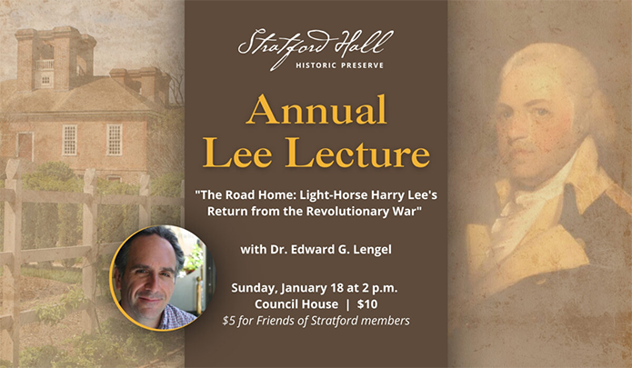 WESTMORELAND—Stratford Hall Historic Preserve, 483 Great House Road, Stratford, recently announced Dr. Edward G. Lengel will deliver the 2026 Lee Lecture, “The Road Home: Light-Horse Harry Lee’s Return from the Revolutionary War,” at 2 p.m. Sunday, January 18.
