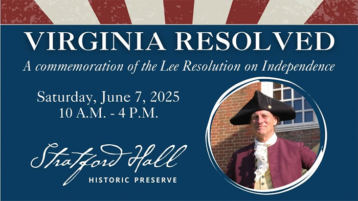 WESTMORELAND— Stratford Hall, 483 Great House Road, Stratford, recently announced plans for Virginia Resolved: A Commemoration of Independence, from 10 a.m.-4 p.m. June 7.