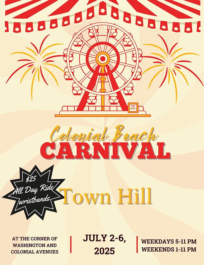 Colonial Beach Carnival, Weekdays 5-11 p.m. Weekends 1-11 p.m. Main Street Reedville. At the Corner of Washington and Colonial Avenues, Colonial Beach.